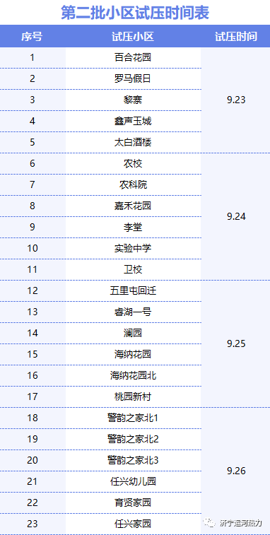 第三批試壓小區(qū)及新接入小區(qū)的試壓時間另行通知,請廣大用戶留意公眾號發(fā)布信息及單元通知欄張貼信息。